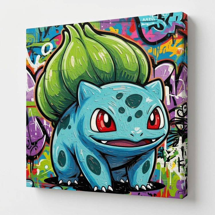 Tableau Bulbizarre street art – Pokémon iconique version graffiti urbain